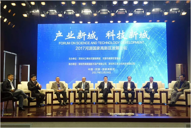 12月28日,主题为“产业新城、科技新城”的2017年河源国家高新区发展论坛在河源市高新区创业服务中心举行。活动由河源市高新区管委会、深圳对口帮扶河源指挥部主办,旨在进一步宣传推广河源国家高新区,汇集各方智慧、凝聚各方力量、借鉴各方经验,为园区新一轮加快发展找准方位、把脉定向,科学谋划“二次创业”新征程,再燃创业激情,引领河源发展。