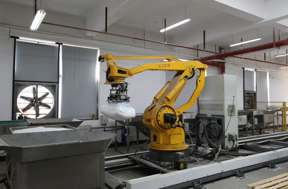 在聚盛模具上料车间,五轴机器人熟练地将成袋的原材料抓送至料槽上方,通过机械手打开袋子,将原材料准确倒入料槽内。“这个也是公司经过多年摸索,自主研发的机器人,不仅可以提高工作效率,还可以帮助解决原材料搬来搬去的麻烦。”聚盛模具总经理雷霆说,机器人24小时“待命”,即便夜晚处于无灯光的黑灯环境中,其工作也不会受影响,仍能正常运行。