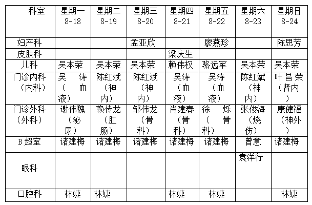 深河门诊部医生工作安排表8月18日-8月24日