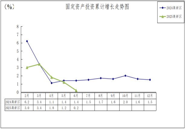 四、高新区固定资产投资比上年同期增长0.2%;工业固定资产投资比上年同期下降2.4%;工业技改比上年同期下降14.6%。