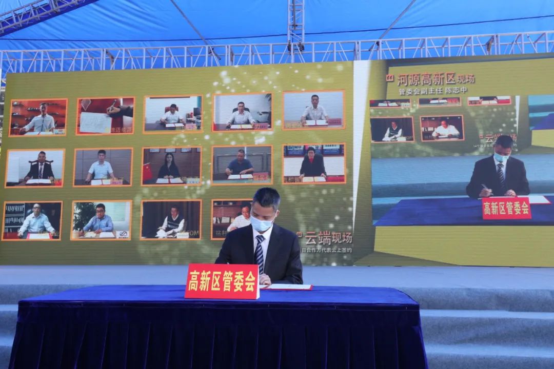 4月28日,河源高新区以“云直播”“云签约”的方式举行2020年春季经贸活动。活动签约项目14个、动工项目16个、投产项目10个,投资总额201.67亿元,按下了河源高新区引领河源招商热潮、项目加快建设的“加速键”。副市长刘东豪,河源高新区党工委书记孙锋,党工委副书记、管委会主任刘大荣等参加活动。
