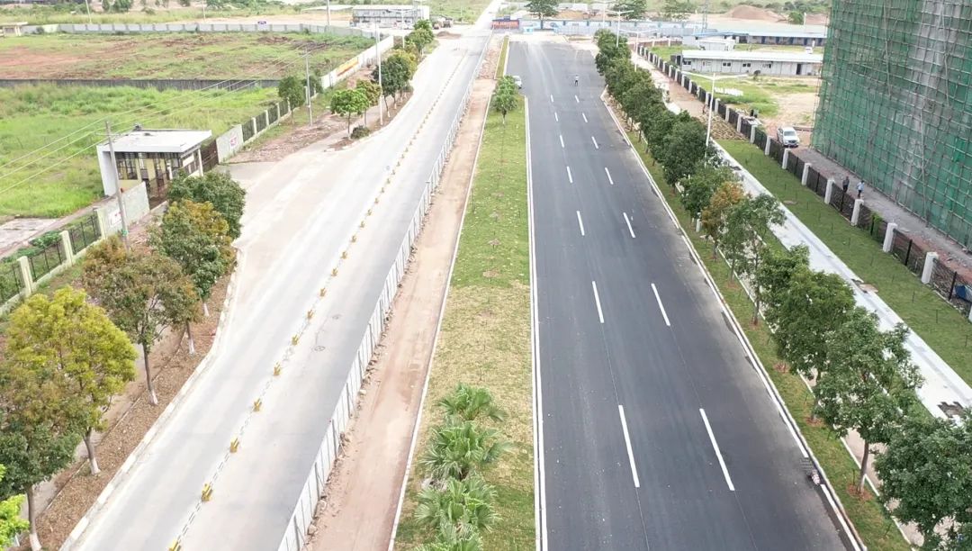 截至5月10日,兴业大道北段左幅主干道沥青路面全线贯通,路面标线施工完成,标志着工程进入半程节点。与此同时,右幅开始进入封闭施工,施工速度将大大加快,双向六车道通行指日可待。