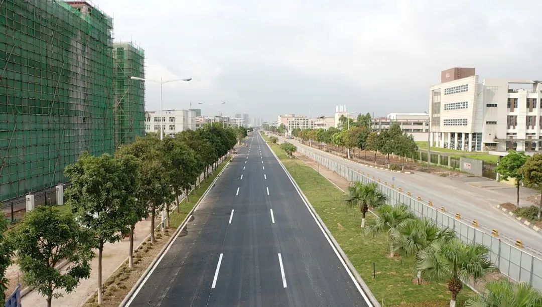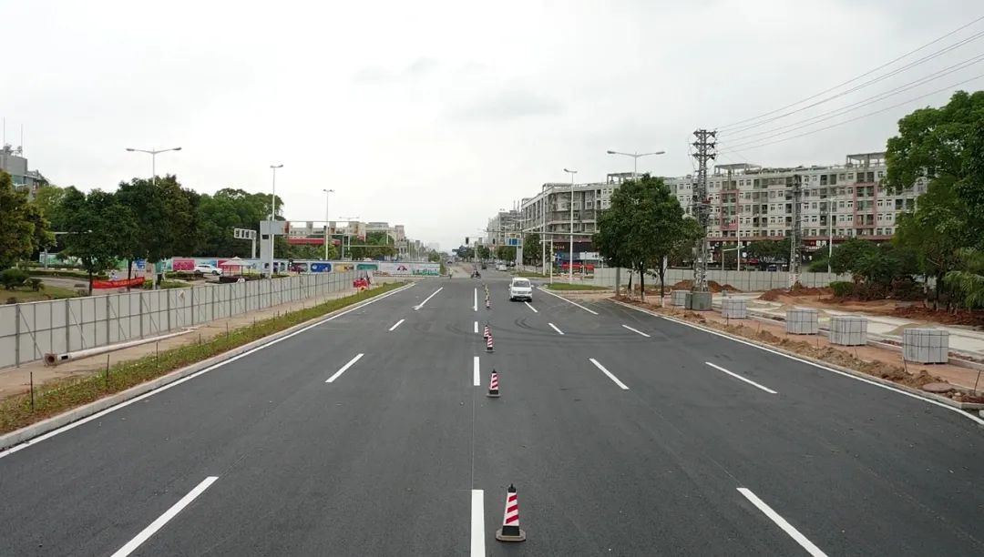 5月8日,随着最后一台沥青摊铺机轰鸣声戛然而止,河源高新区正在升级改造的主干道——兴业大道北段左幅3.31公里主干道全线贯通,比项目预期节点提前53天。