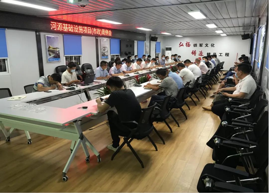 领导靠前指挥,生产常抓不懈。现场始终围绕“作战图”施工,将目标贯穿日常工作计划中,制定了“两会两场”作战方案,即:每周召开安全生产例会、每日组织现场碰头会、抢抓白天“白场”全面出击大干快上、紧盯夜间“夜场”步步为营平稳生产,项目管理团队夙兴夜寐、不遗余力地工作,确保了项目生产有序推进。