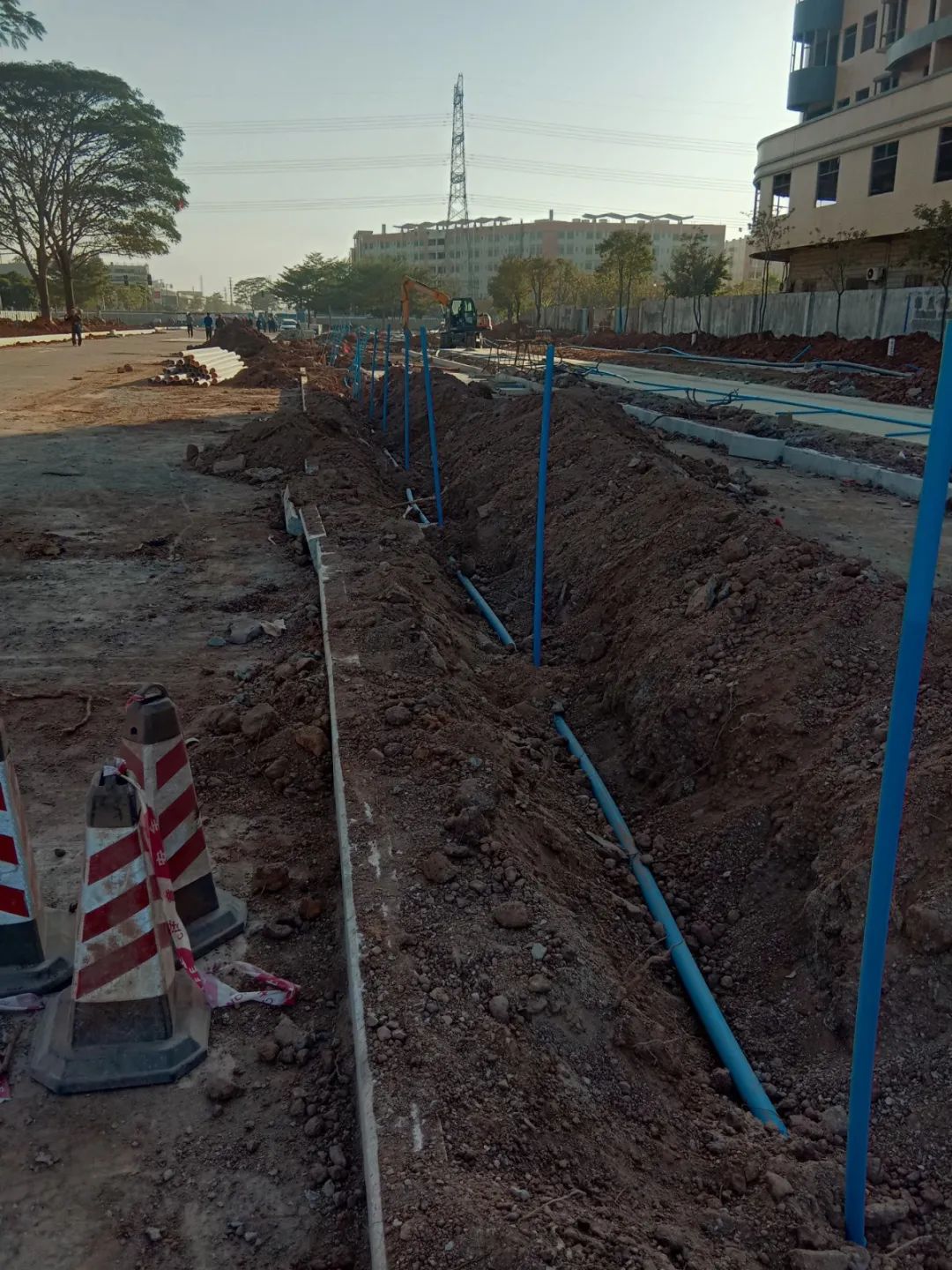 目前兴业大道南段已基本完工,正进行绿化收尾工作和雨水管顶管工作。