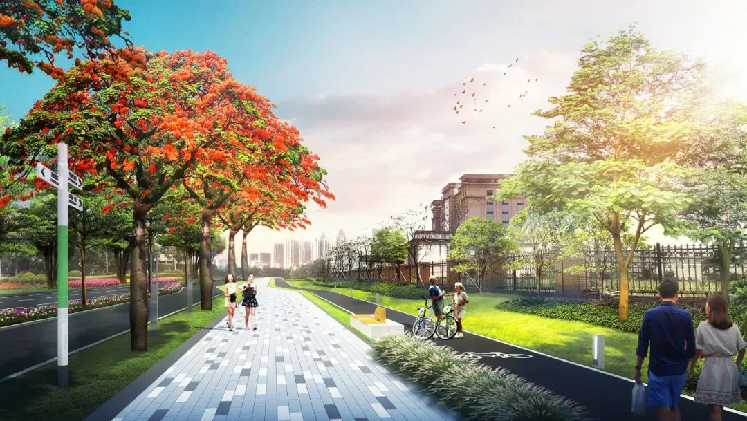 兴业大道北段正在加紧建设当中,6月中旬前完成北段东侧沥青路面,9月底完成道路北段东侧人行道铺装、绿化种植,完成北段西侧沥青路面及交通工程。