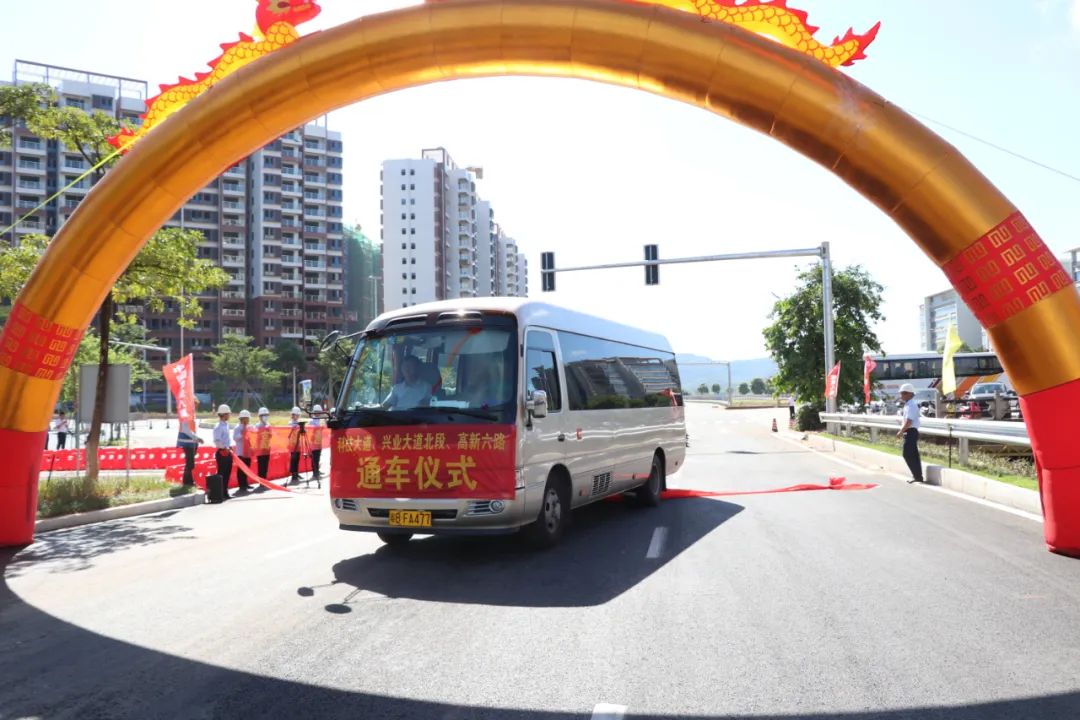 今天,经过7个多月的努力,兴业大道北段东侧、科技大道北侧、高新六路机动车道全线贯通,正式通车。