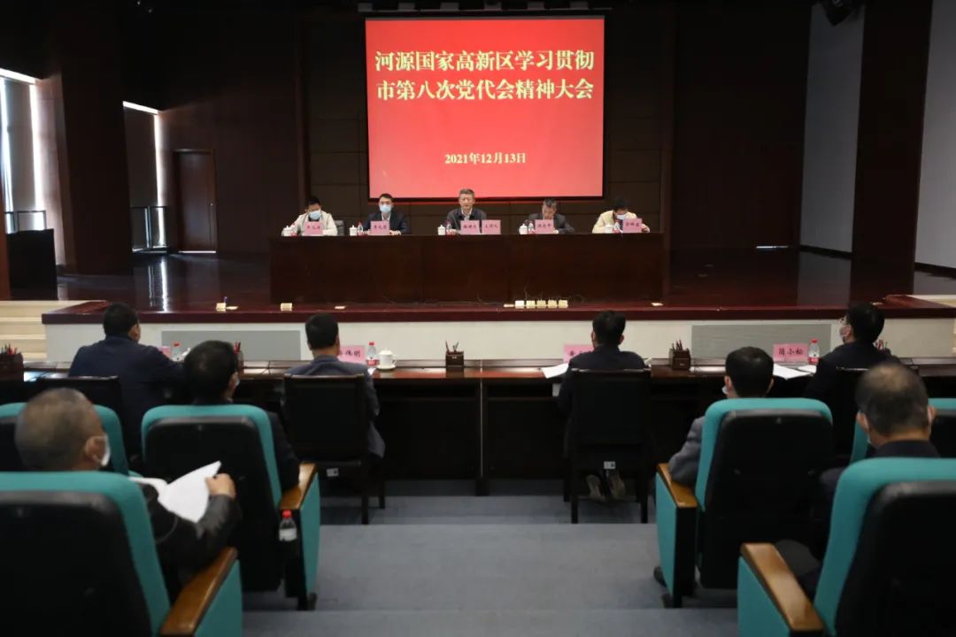 会议强调,河源国家高新区干部职工要全面深入领会、切实把思想和行动统一到市第八次党代会精神上来。要加强学习,全面贯彻落实习近平新时代中国特色社会主义思想,不断增强“四个意识”、坚定“四个自信”、做到“两个维护”,深入落实省委“1 1 9”工作部署,把深入学习贯彻市第八次党代会精神作为当前最重要的政治任务和头等大事,确保市第八次党代会精神入脑入心、落地落实,确保市委各项部署要求在高新区抓紧、抓实、抓出成效。要迅速传达,把全面学习贯彻市第八次党代会精神与学习贯彻习近平总书记“七一”重要讲话精神、党的十九届六中全会精神结合起来,与开展党史学习教育、高新区各项工作结合起来,精心组织、周密部署,推动各基层党组织通过 “三会一课”、学习宣讲报告会、专题讲座等多种形式,分层分类抓好市第八次党代会精神的学习宣传贯彻工作,在全区上下迅速掀起学习热潮,把智慧和力量凝聚到落实市第八次党代会部署上来,在新时代新征程上推进高新区高质量发展。要学用结合,在各自岗位创造性地开展工作,一件一件工作抓落实,一项一项任务求实效,把学习成果转化为高新区高质量发展的强大动力和生动实践,推动高新区又快又稳高质量发展,以优异成绩迎接党的二十大胜利召开,为幸福和谐美丽河源建设增辉添彩、贡献力量。